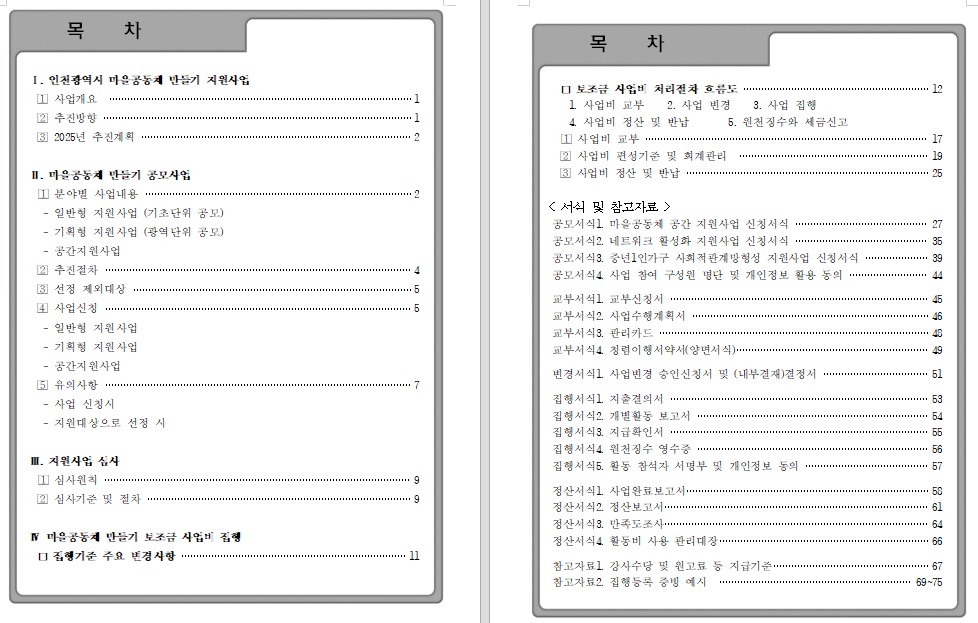 ▶ 공모사업 서식 및 참고자료 2.(27.~75. 페이지)