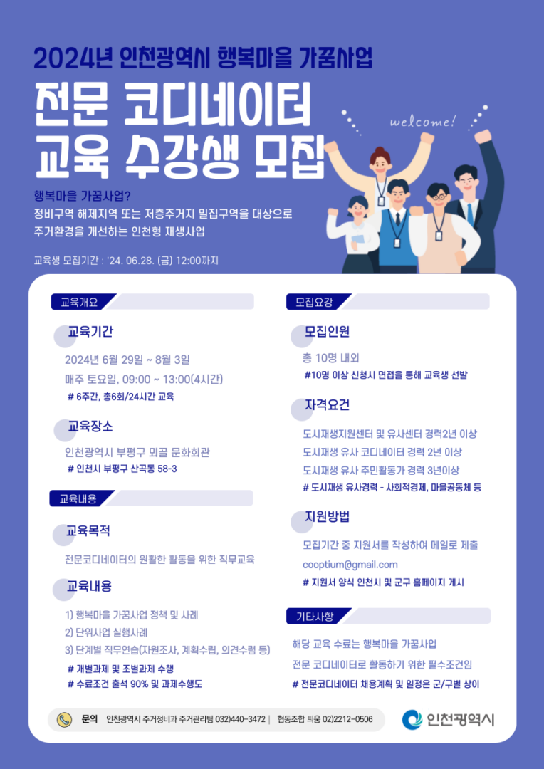 2024년 인천광역시 행복마을 가꿈사업 전문코디네이터 수강생 모집 안내