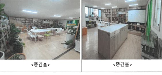 🏠공간 구성: 중간홀, 회의실1, 물품보관 및 피아노(방음시설)1, 주방, 사무실, 창고1 / 50평