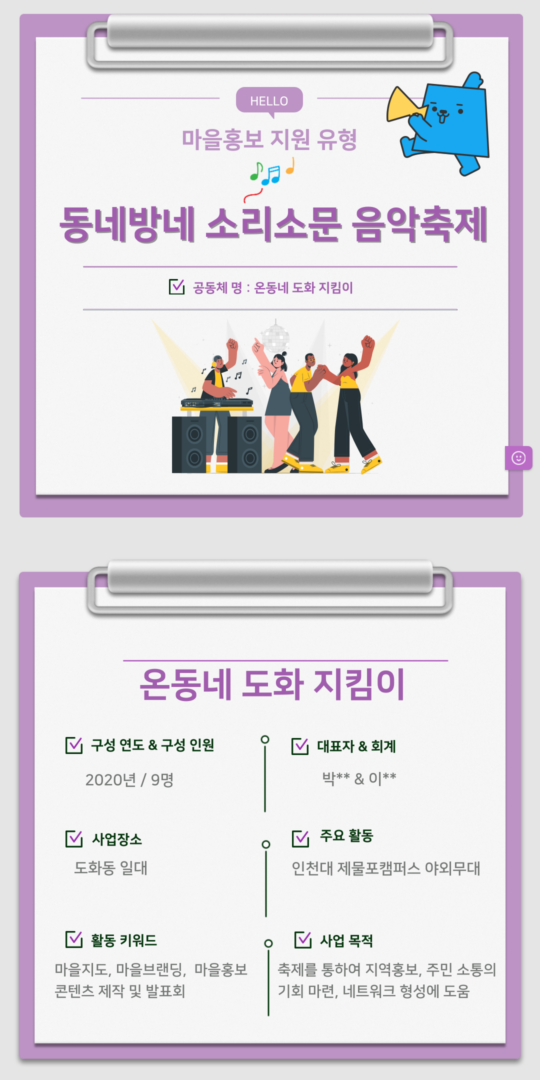 마을 공모사업 최종업데이트 : 11/08/2025 조회수 : 101 2025년 마을홍보 유형 [동네방네 소리소문 음악축제]작성자 : 관리자 이전글2025년 마을홍보 유형 [용일자유시장의 날갯짓, 용일콘텐츠] 다음글2025년 마을홍보 유형 [오늘은 ‘우리 여기’] 목록보기