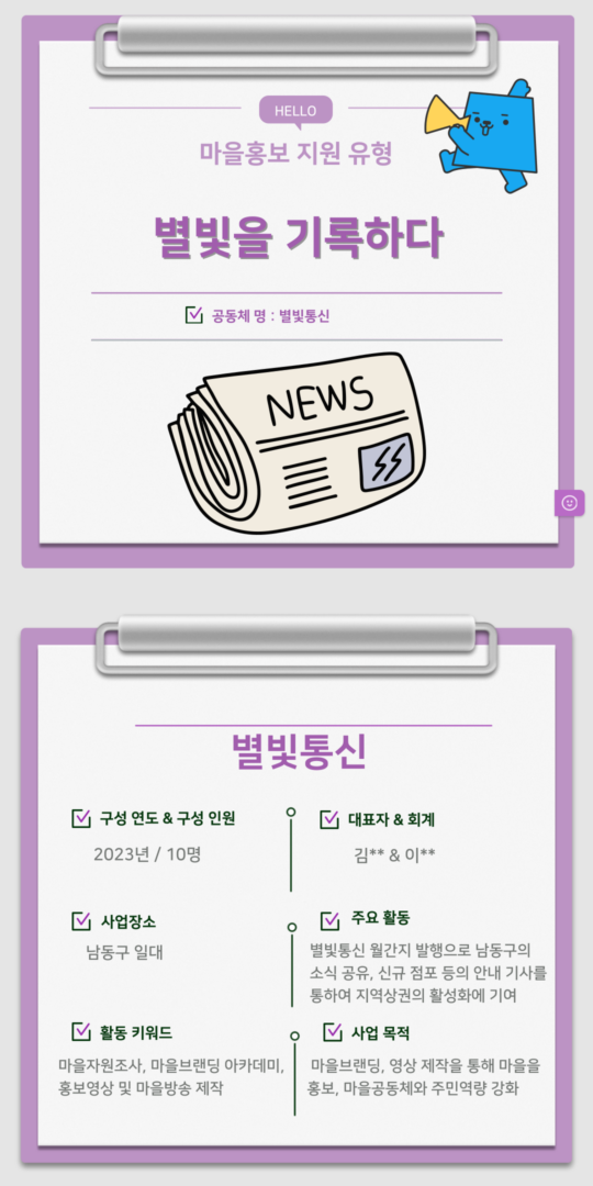 마을 공모사업 최종업데이트 : 11/08/2025 조회수 : 85 2025년 마을홍보 유형 [별빛을 기록하다]작성자 : 관리자 이전글2025년 마을홍보 유형 [날아오르다!! 까치마을] 다음글2025년 마을홍보 유형 [일신동지명 79주년!! 지역거리축제] 목록보기