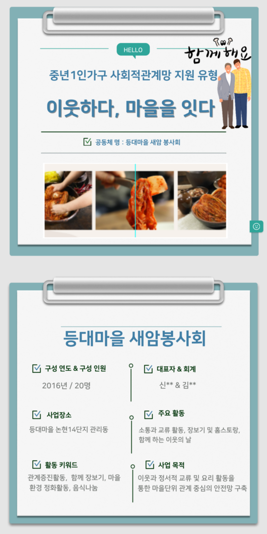 마을 공모사업 최종업데이트 : 11/08/2025 조회수 : 78 2025년 중년1인가구 지원 [이웃하다, 마을을 잇다.]작성자 : 관리자 이전글2025년 중년1인가구 지원 [더불어 중년] 다음글2025년 기타주민제안 유형 [ 우당탕탕!! 팝업놀이터] 목록보기